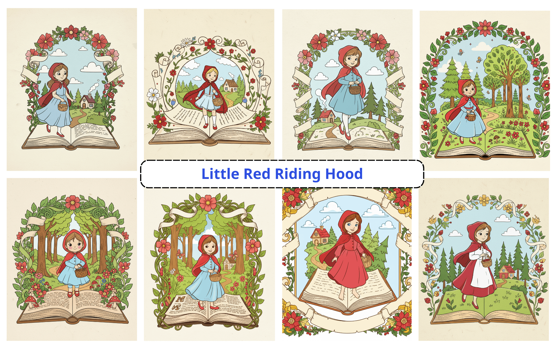⭐ 400 High-Quality Prompts for Complete, Consistent Storybook Characters & Houses scenes (Goldilocks, Cinderella, Hansel & Gretel, Tom Thumb, Snow White, Jack and the Beanstalk, The Snow Queen Thumbelina, Little Red Riding Hood, Sleeping Beauty, House)