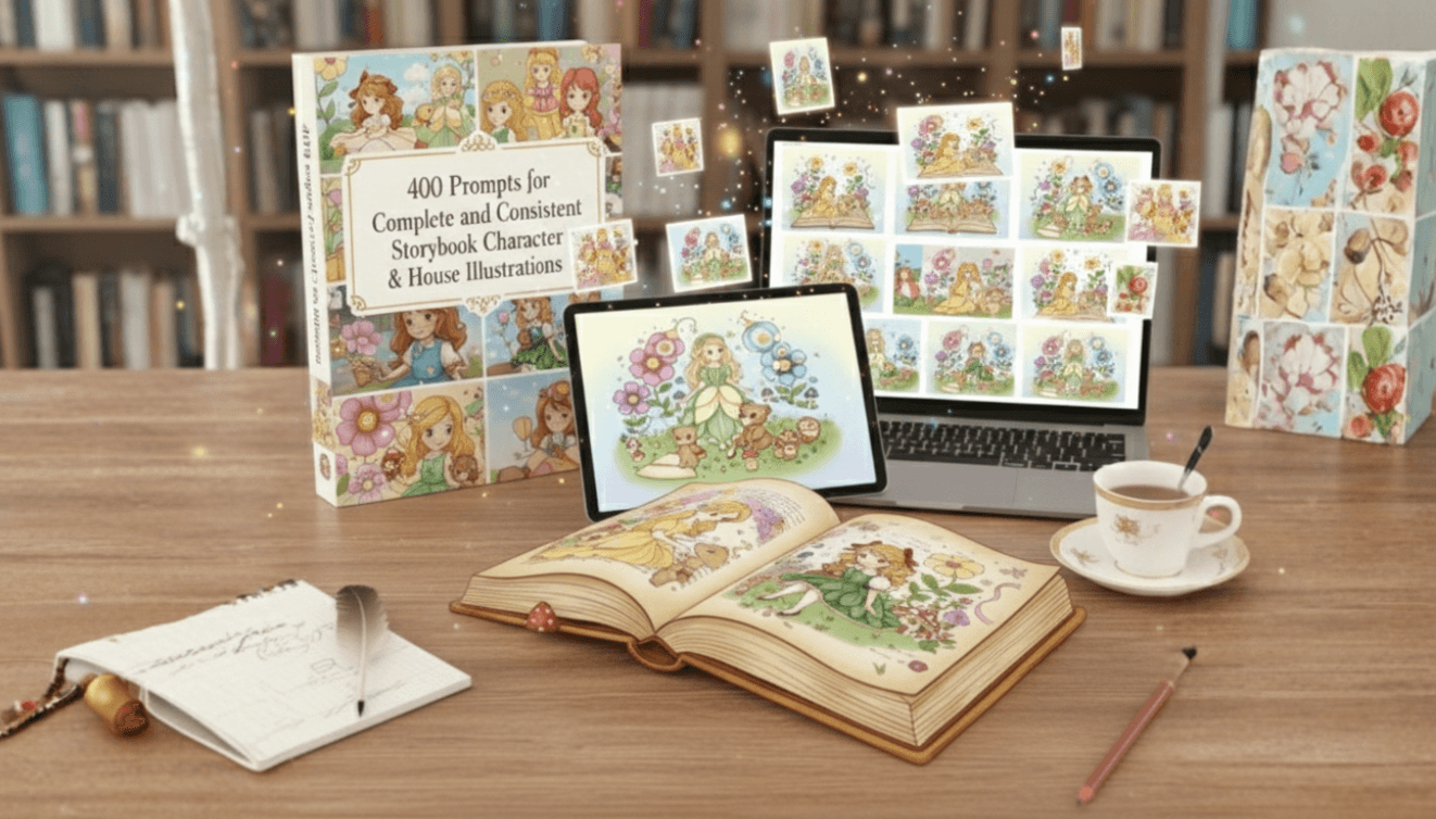 That’s exactly why these 400 Prompts for Complete and Consistent Storybook Character and House Illustrations were created.