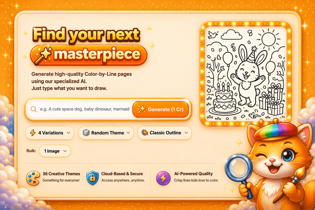 Forget complex drawing software like Illustrator or spending hours learning AI prompts! We’ve packed our breakthrough Color-by-Line technology into one intuitive, fast dashboard. Zero tech or artistic skills needed. Just select one of the 36 themes, generate your 4 variations, hit ‘Export’, and your stunning coloring book is ready in minutes