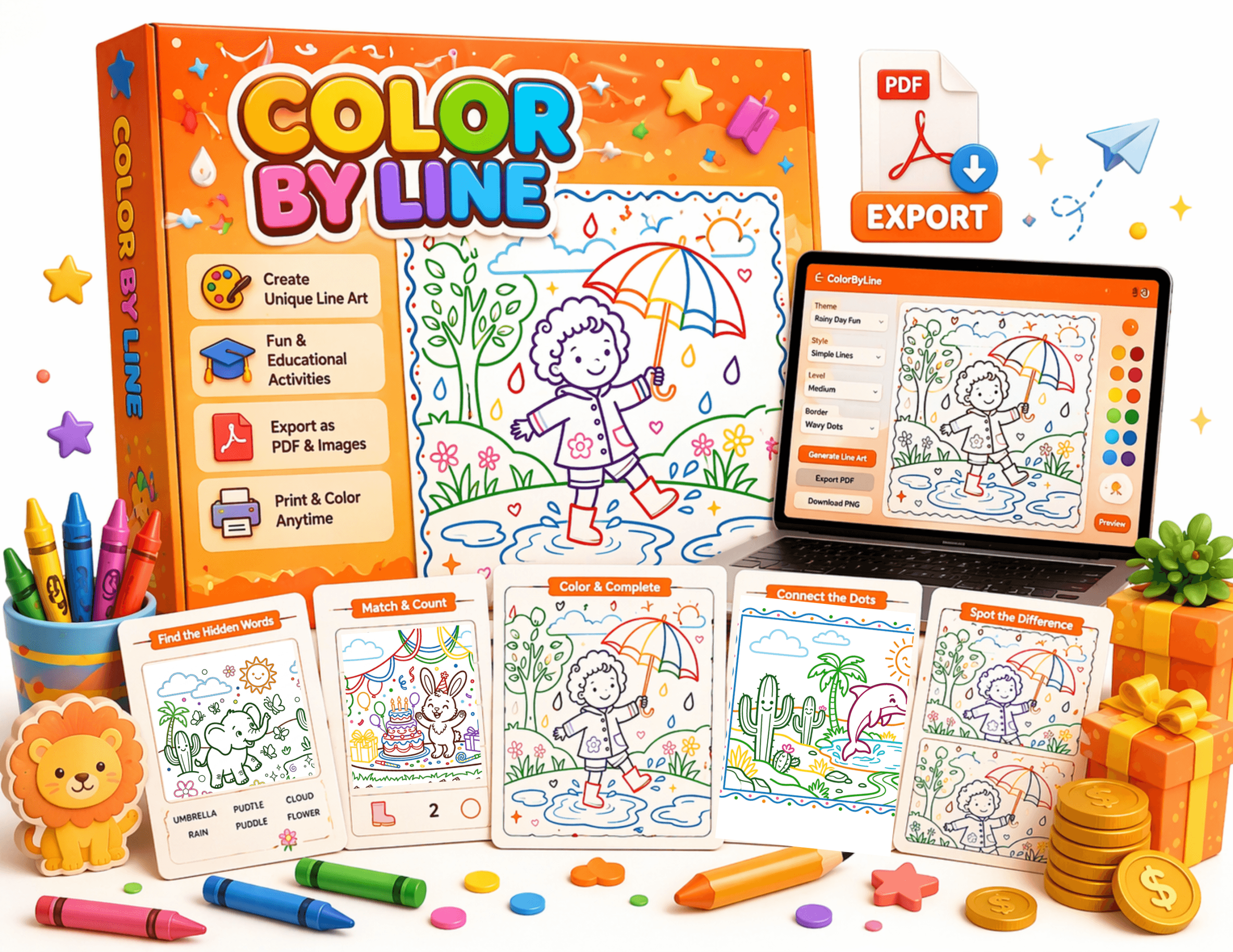 Color By Line is built for lightning-fast results and 100% newbie-friendly execution. It is the perfect tool for Amazon KDP publishers, Etsy printables sellers, teachers, parents, and digital product creators.